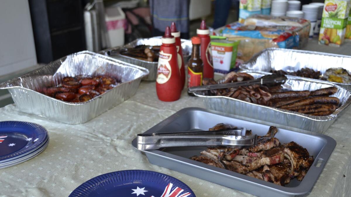 Aussie brekky: Lamb chops and snags were among the food on offer on Wednesday morning.