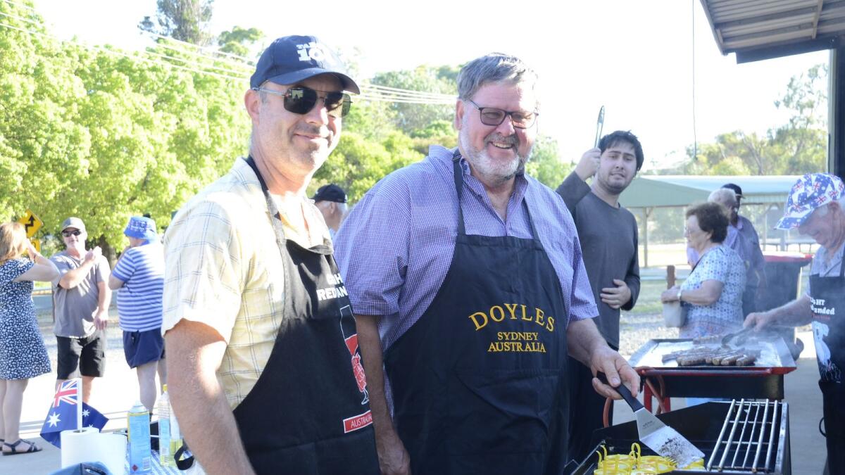 Cooking up a storm: John Kennedy and Jack Turvey manned the barbecue.