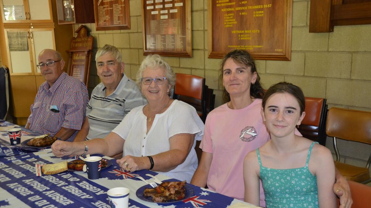 Big brekky: (L-R) Rowan Gribben, Doug Mawson, Gwenda Metzke, Wendy Kennedy and Charlee Kennedy, 11.