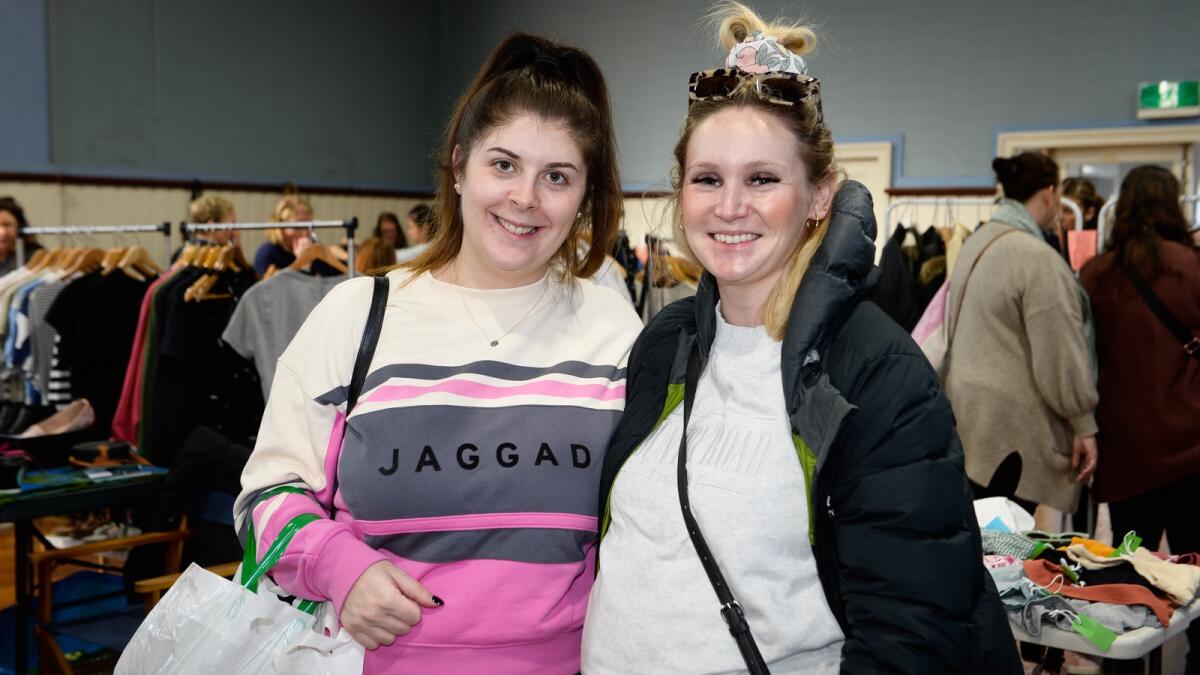 Sunday shopping: Georgia Vibert and Kasey Threlfall browsing the many stalls.