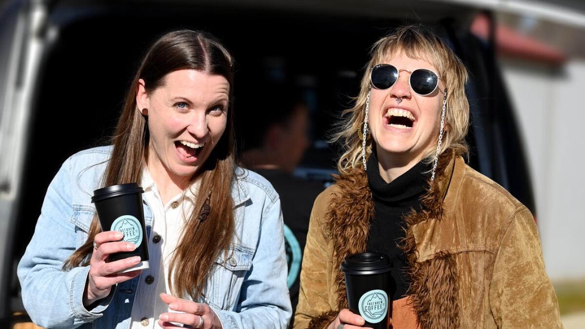 Fun in the sun: Mel Newton and Loz Barker grab coffee at the Regional Rummage.