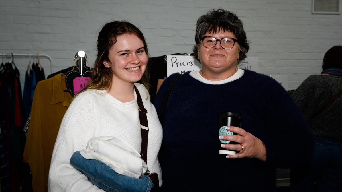 Bargain hunters: Abbey and Susan Lazenby searching for some good buys.