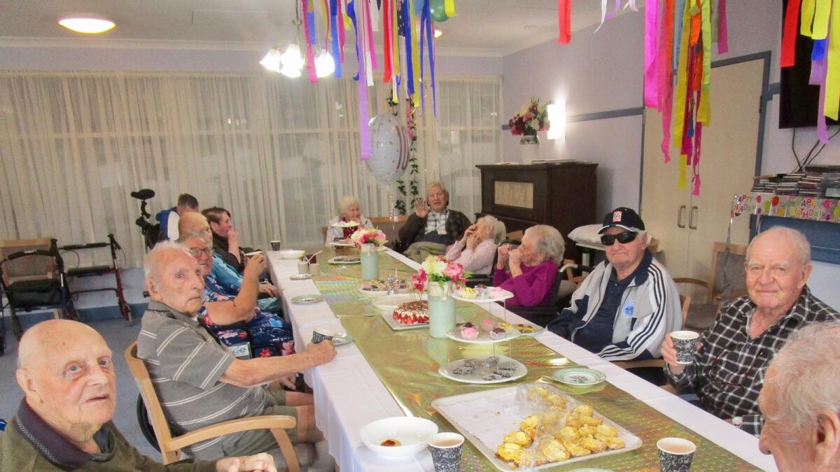 Party time: Barrabill House residents celebrate Ally Fisher's 100th birthday.