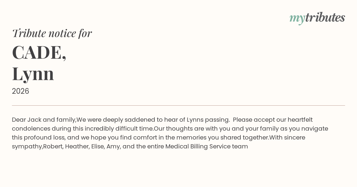 We were deeply saddened to hear of Lynn’s passing. Please accept our heartfelt condolences during this incredibly difficult time.