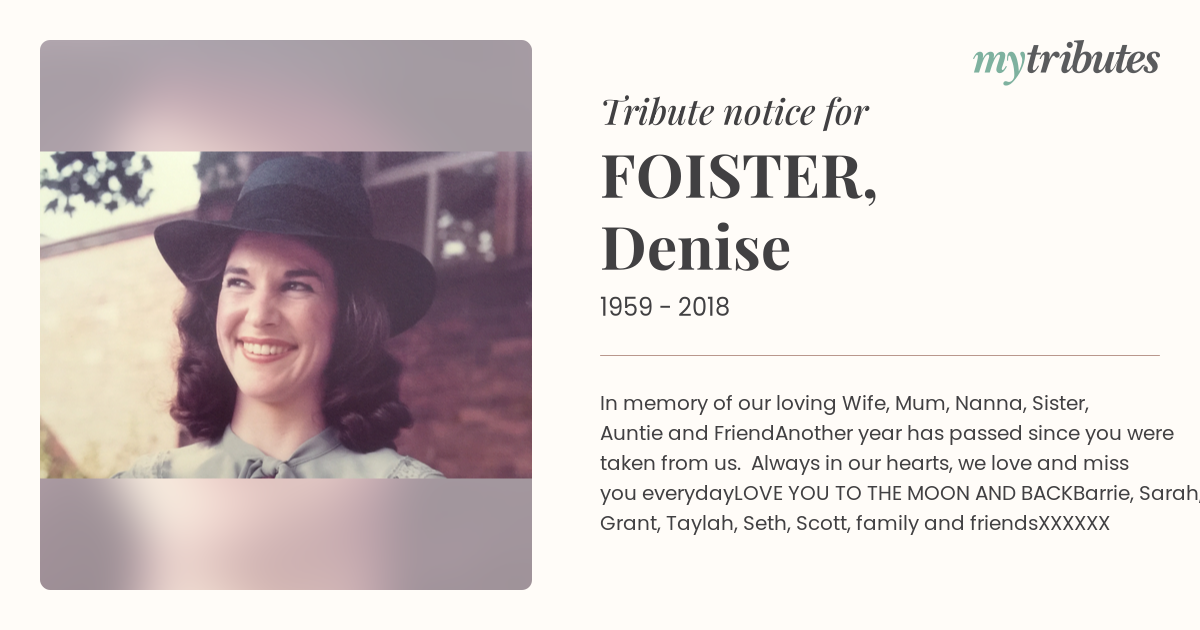 16°CIn memory of our loving Wife, Mum, Nanna, Sister, Auntie and Friend