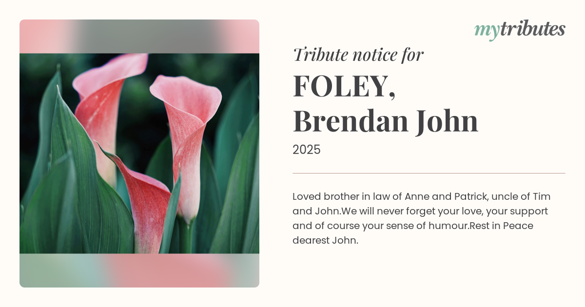 16°CLoved brother in law of Anne and Patrick, uncle of Tim and John.