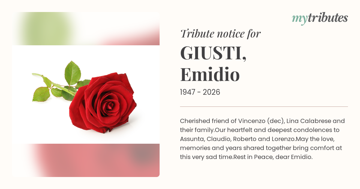 Our heartfelt and deepest condolences to Assunta, Claudio, Roberto and Lorenzo.