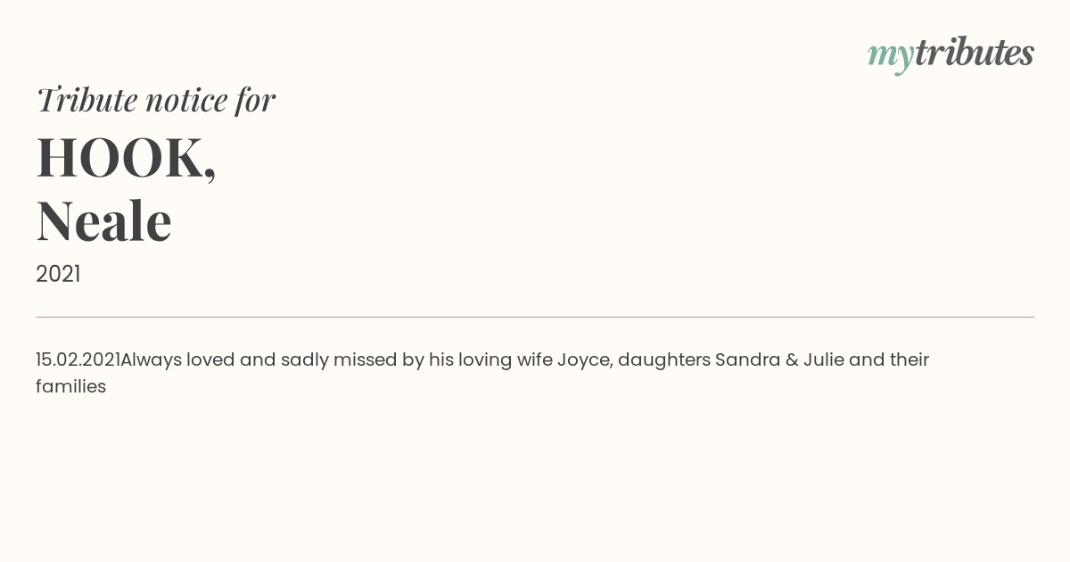 Always loved and sadly missed by his loving wife Joyce, daughters Sandra & Julie and their families