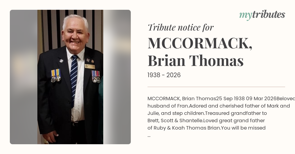 Loved great grand father of Ruby & Koah Thomas Brian.