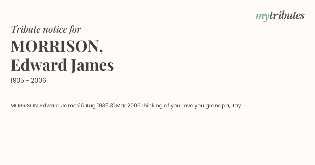 MORRISON, Edward James16 Aug 1935 31 Mar 2006Thinking of you.Love you grandpa, Jay