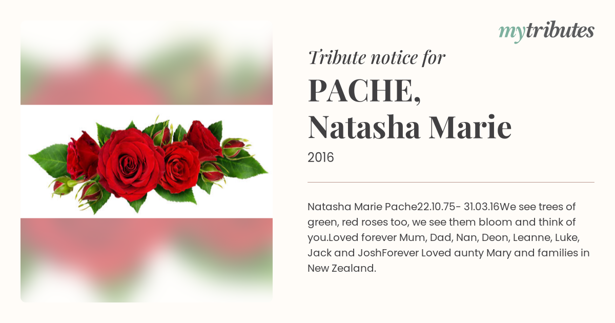 Loved forever Mum, Dad, Nan, Deon, Leanne, Luke, Jack and Josh