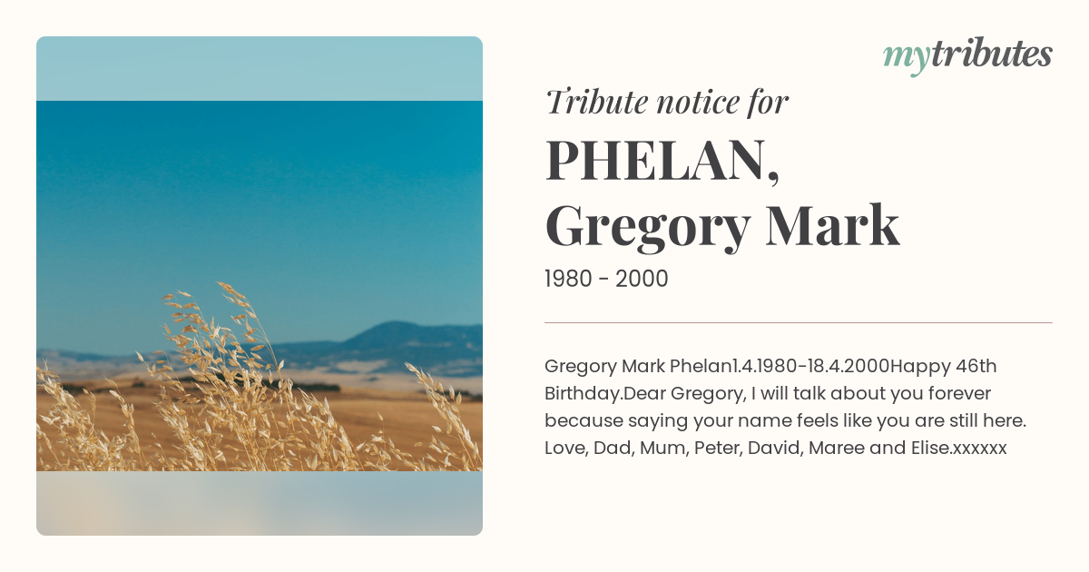 Dear Gregory, I will talk about you forever because saying your name feels like you are still here.