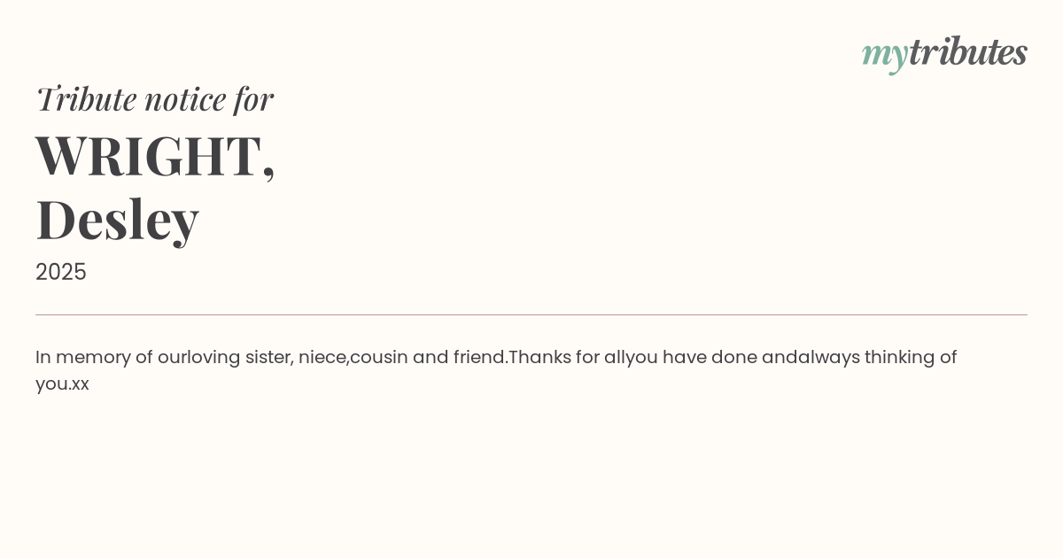 Where would you like to share this Tribute?