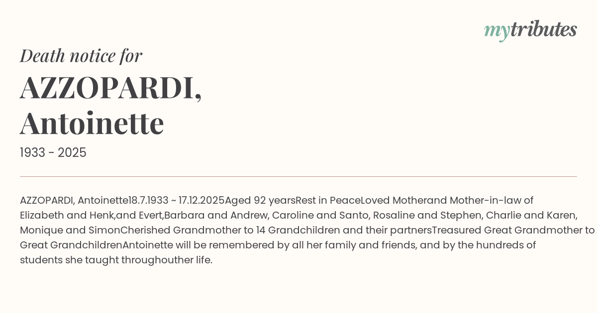 Antoinette will be remembered by all her family and friends, and by the hundreds of students she taught throughout