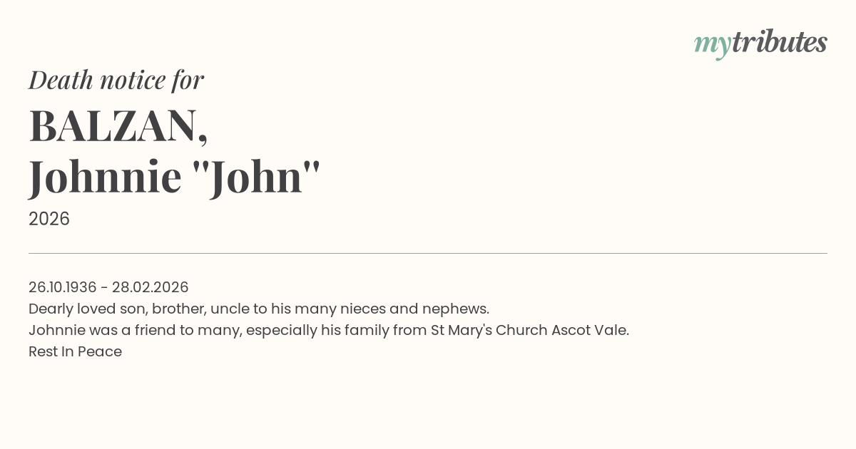 Johnnie was a friend to many, especially his family from St Mary's Church Ascot Vale.