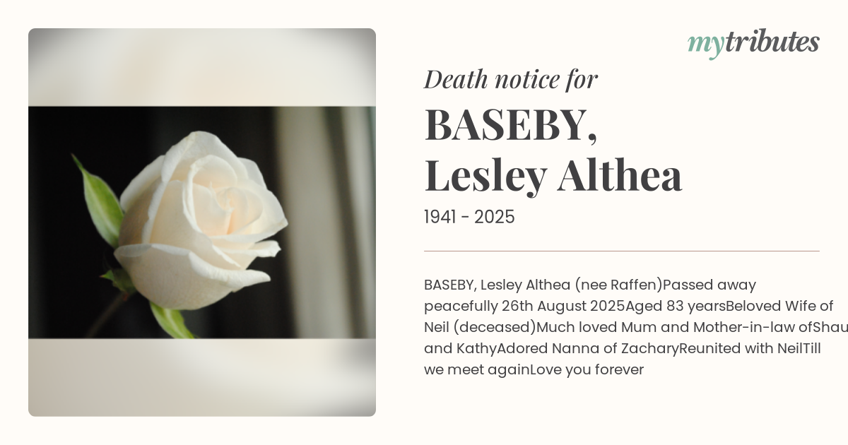 16°CBASEBY, Lesley Althea (nee Raffen)