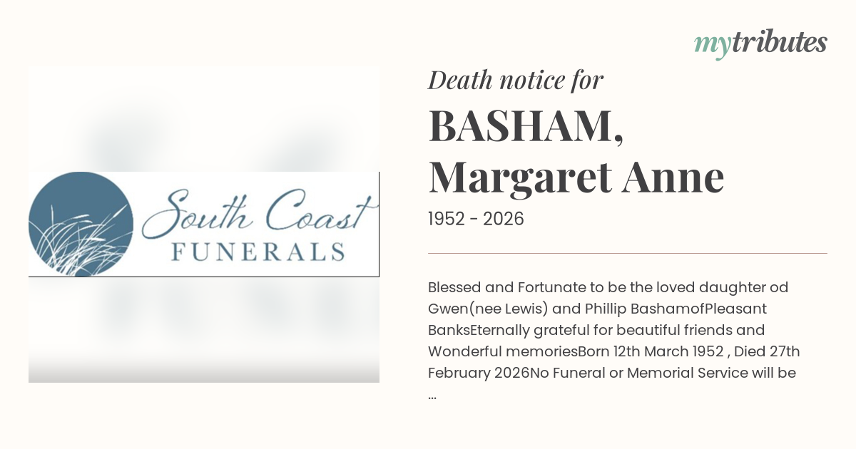 16°CBlessed and Fortunate to be the loved daughter od Gwen(nee Lewis) and Phillip Bashamof
