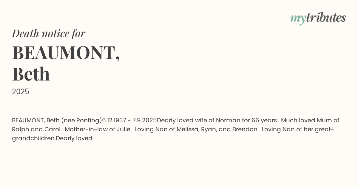 16°CBEAUMONT, Beth (nee Ponting)