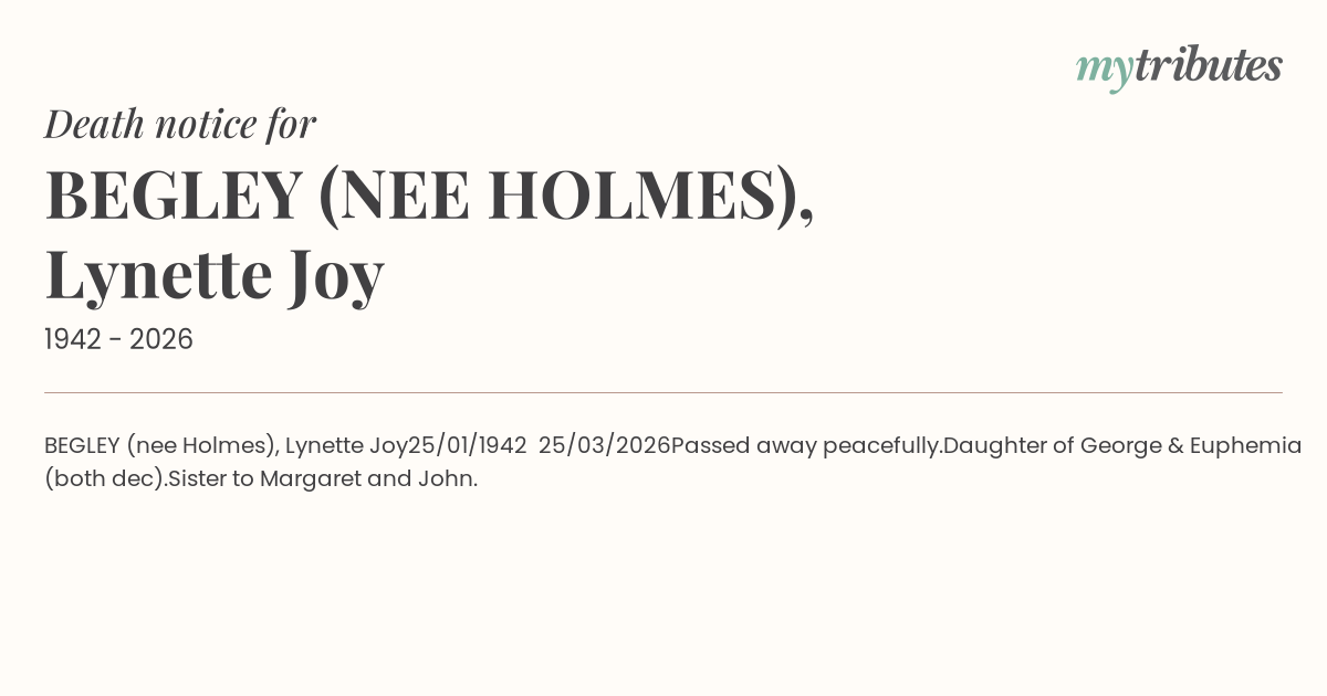 16°CBEGLEY (nee Holmes), Lynette Joy