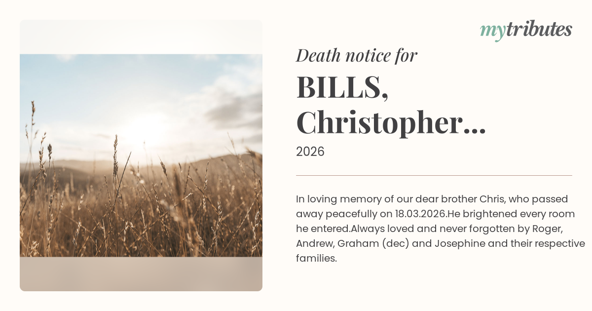 16°CIn loving memory of our dear brother Chris, who passed away peacefully on 18.03.2026.