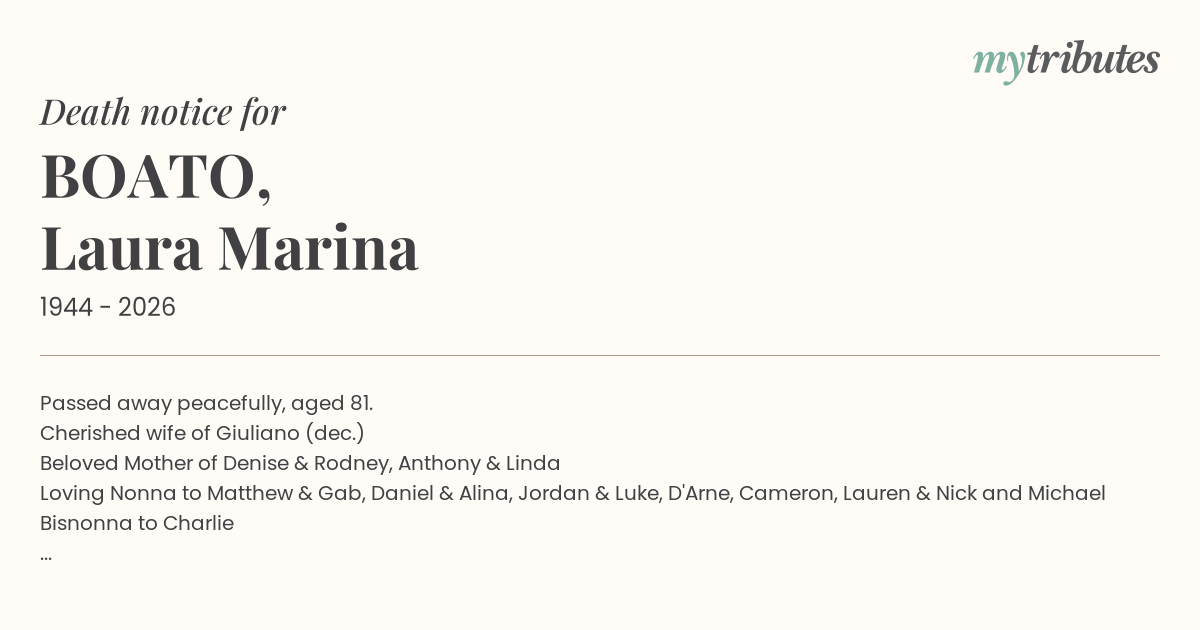Loving Nonna to Matthew & Gab, Daniel & Alina, Jordan & Luke, D'Arne, Cameron, Lauren & Nick and Michael