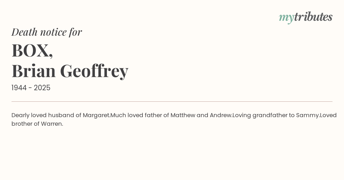 Much loved father of Matthew and Andrew.
