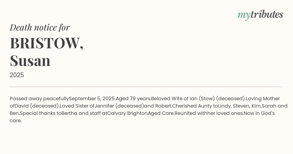 Ian (Stow) (deceased).