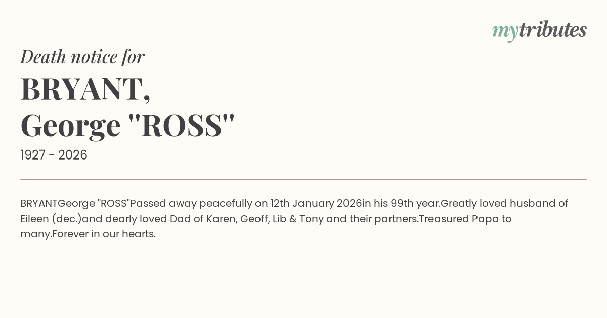 and dearly loved Dad of Karen, Geoff, Lib & Tony and their partners.