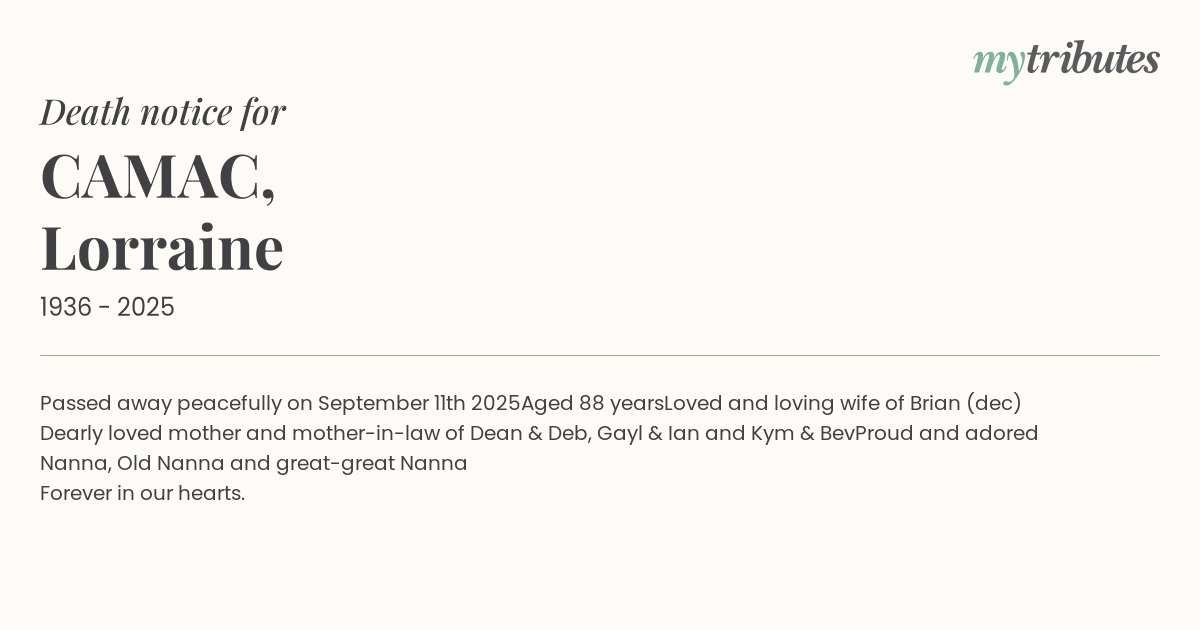 16°CPassed away peacefully on September 11th 2025