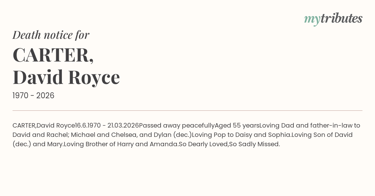 Loving Dad and father-in-law to David and Rachel; Michael and Chelsea, and Dylan (dec.)