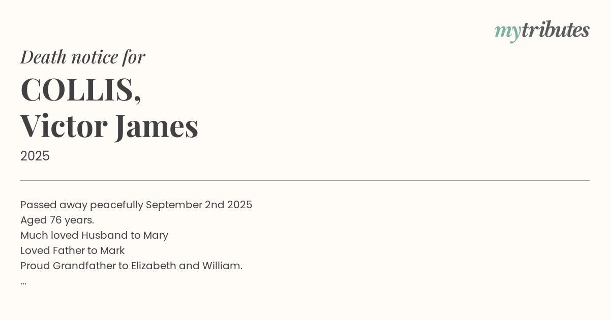 Loved Brother to Sandra, Julie, Grant and Andrew (Dec)