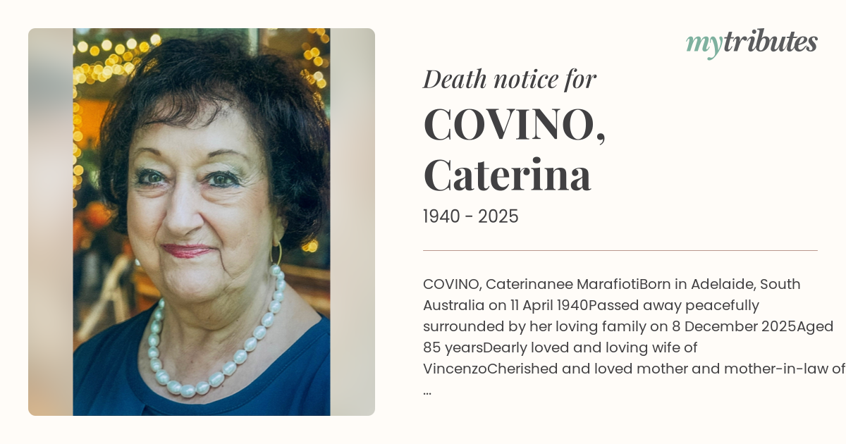 Loving daughter-in-law of Giuseppe and Anna Covino (both deceased)