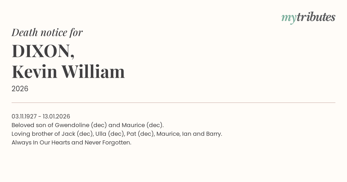 Beloved son of Gwendoline (dec) and Maurice (dec).