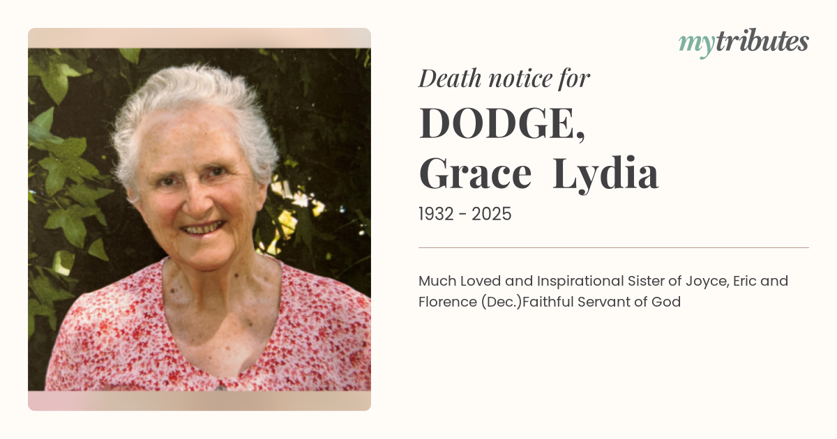 16°CMuch Loved and Inspirational Sister of Joyce, Eric and Florence (Dec.)