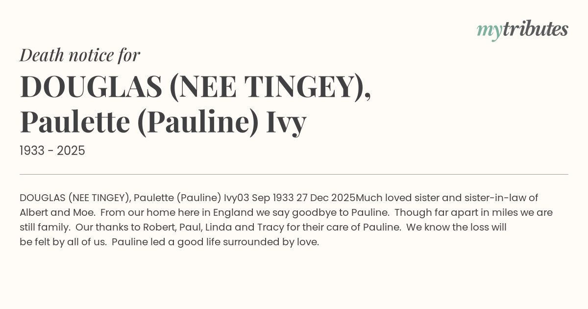 16°CDOUGLAS (NEE TINGEY), Paulette (Pauline) Ivy
