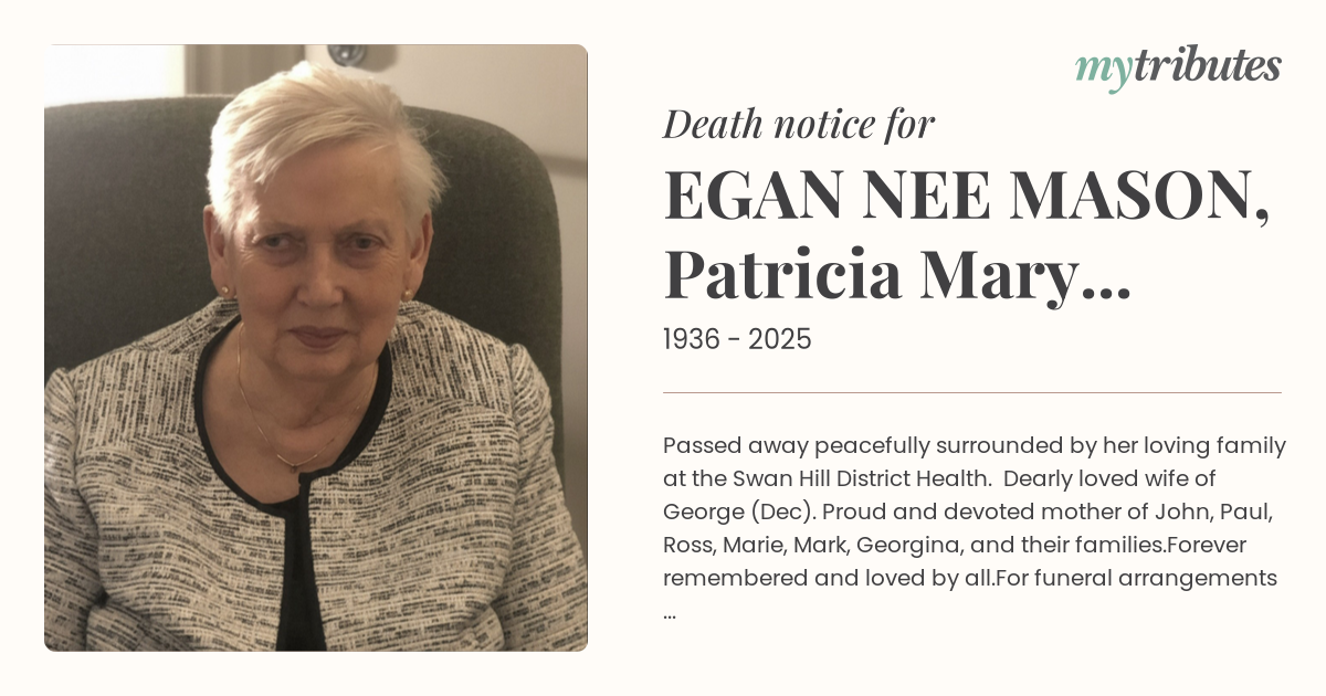 16°CPassed away peacefully surrounded by her loving family at the Swan Hill District Health.