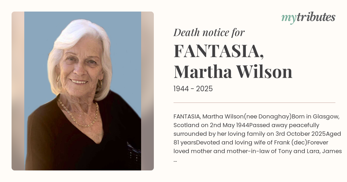 Passed away peacefully surrounded by her loving family on 3rd October 2025