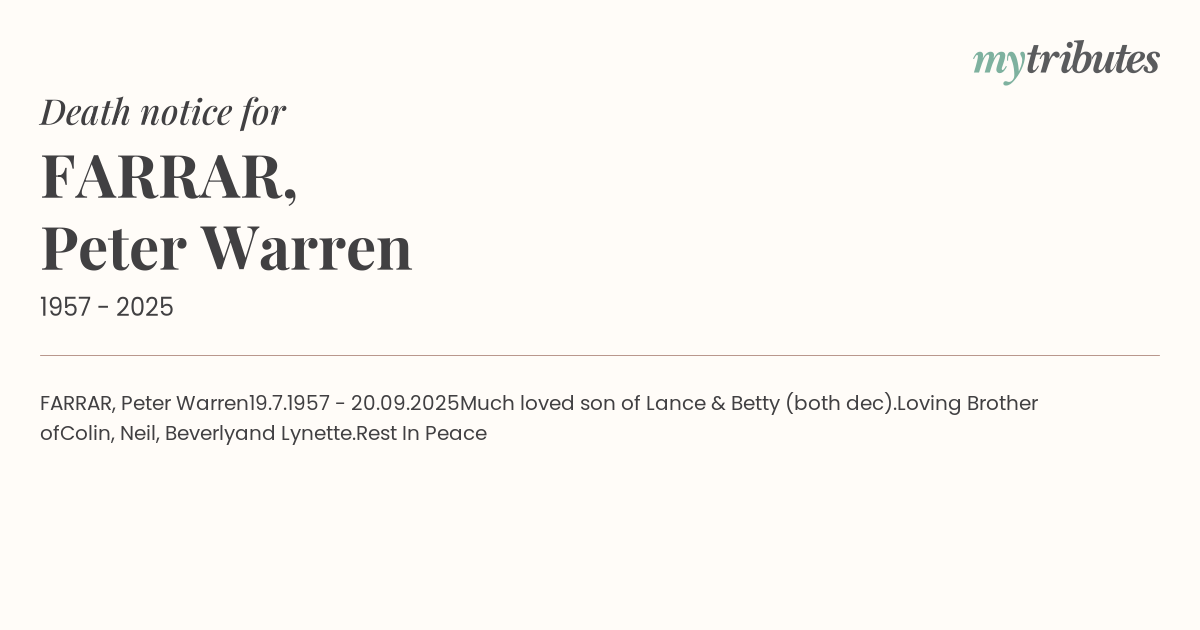 Much loved son of Lance
