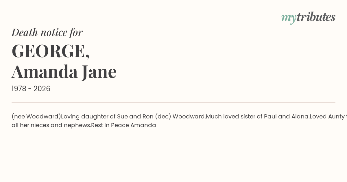 Much loved sister of Paul and Alana.