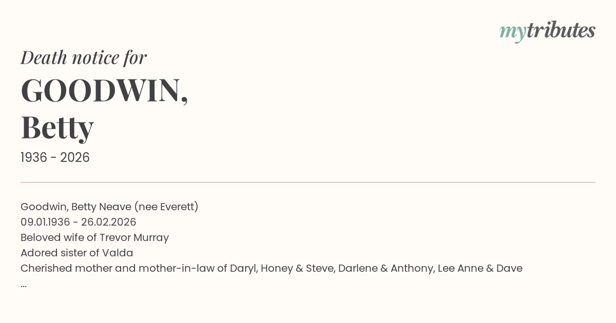 Treasured Grannie to David, Paula, Wayne, Alex, Deanna & partners