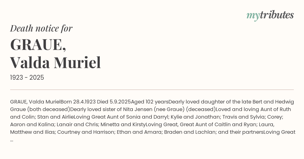 Dearly loved sister of Nita Jensen (nee Graue) (deceased)