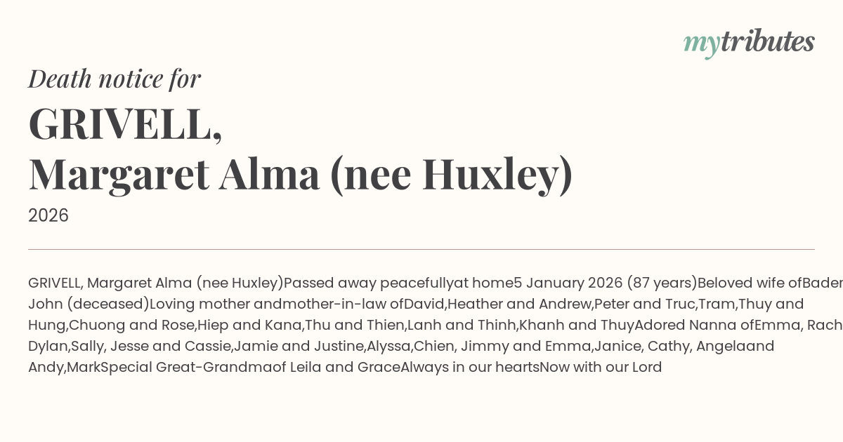 16°CGRIVELL, Margaret Alma (nee Huxley)