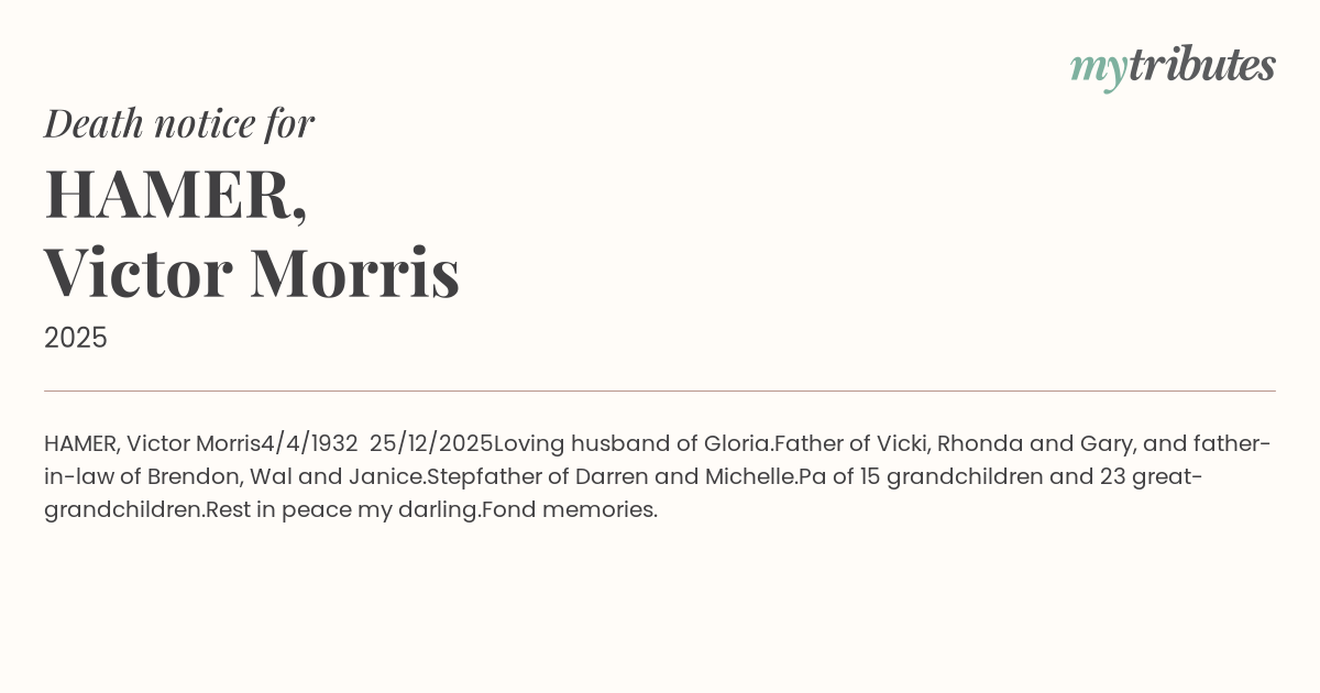 Father of Vicki, Rhonda and Gary, and father-in-law of Brendon, Wal and Janice.