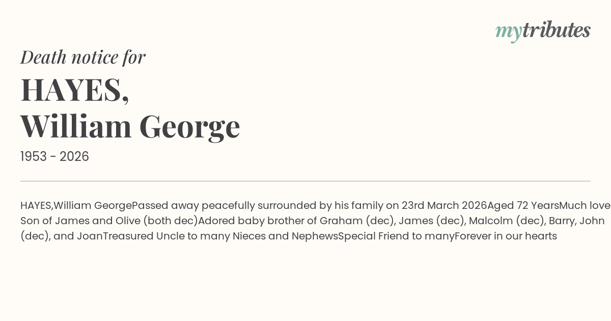 Passed away peacefully surrounded by his family on 23rd March 2026