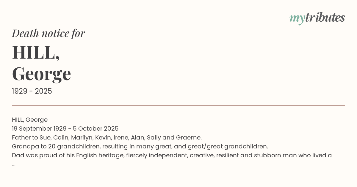 Dad was proud of his English heritage, fiercely independent, creative, resilient and stubborn man who lived a great life.