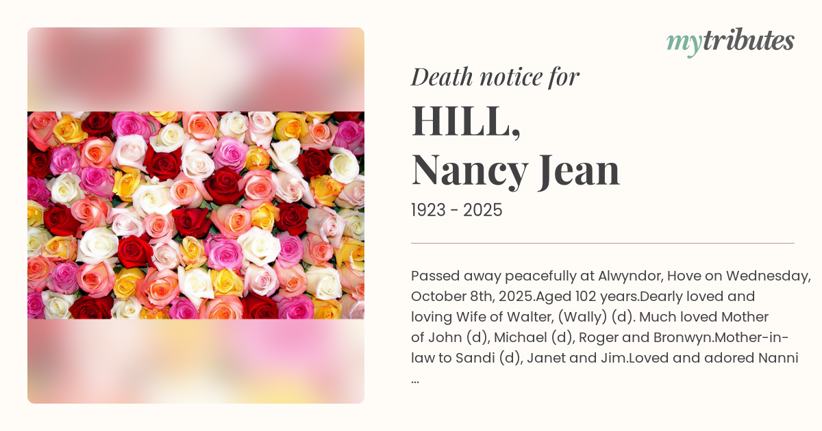 16°CPassed away peacefully at Alwyndor, Hove on
