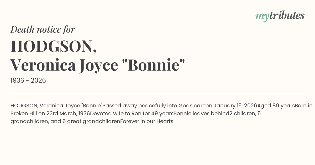 16°CHODGSON, Veronica Joyce "Bonnie"