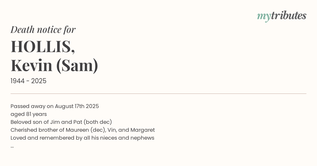 Cherished brother of Maureen (dec), Vin, and Margaret