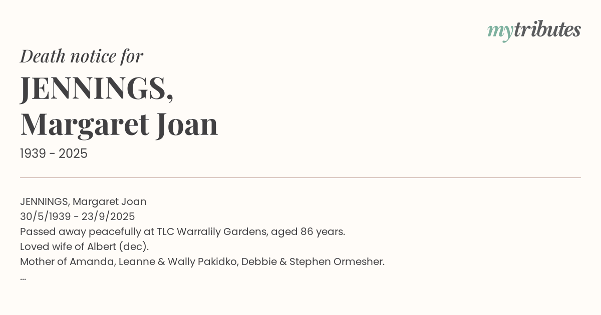 16°CJENNINGS, Margaret Joan