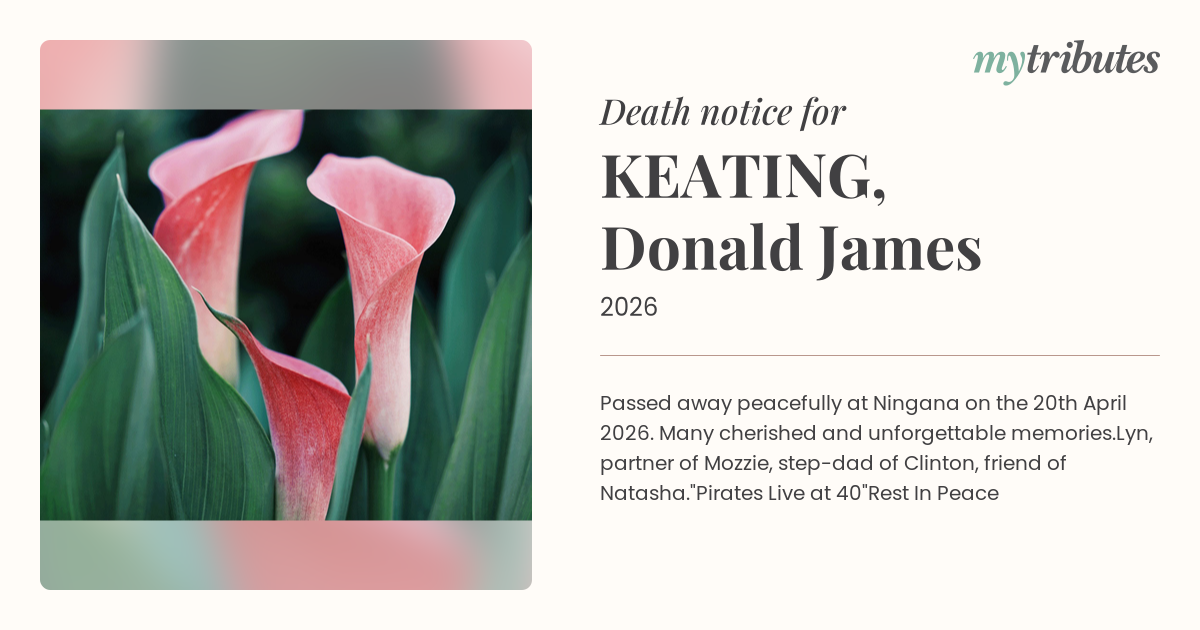16°CPassed away peacefully at Ningana on the 20th April 2026.